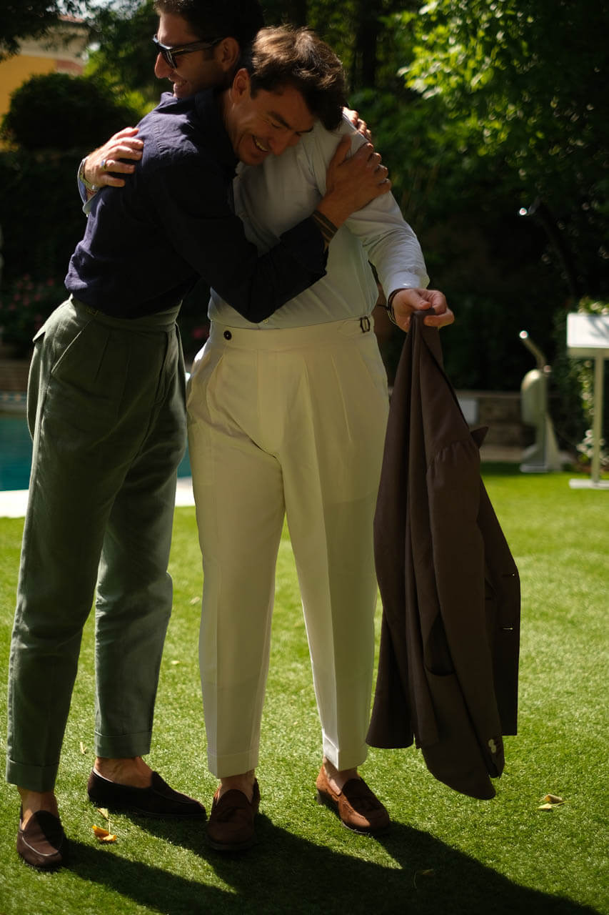 When trousers are too long, they fold over your shoes in messy stacks, ruin the proportions of your outfit, and make your movement feel heavier. It shows a lack of precision — and that always breaks the impression of elegance. The right length should gently touch your shoe or break once at the front. No folds. No puddles. Especially when you’re not wearing a jacket — your trousers carry the whole visual balance. It’s a detail that tells people: this man notices things. And if he notices his hems, he probably notices more than that.